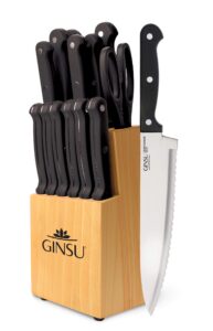 Ginsu Kiso 14-Piece Black Knife Set with Natural Block – Dishwasher Safe and Always Sharp